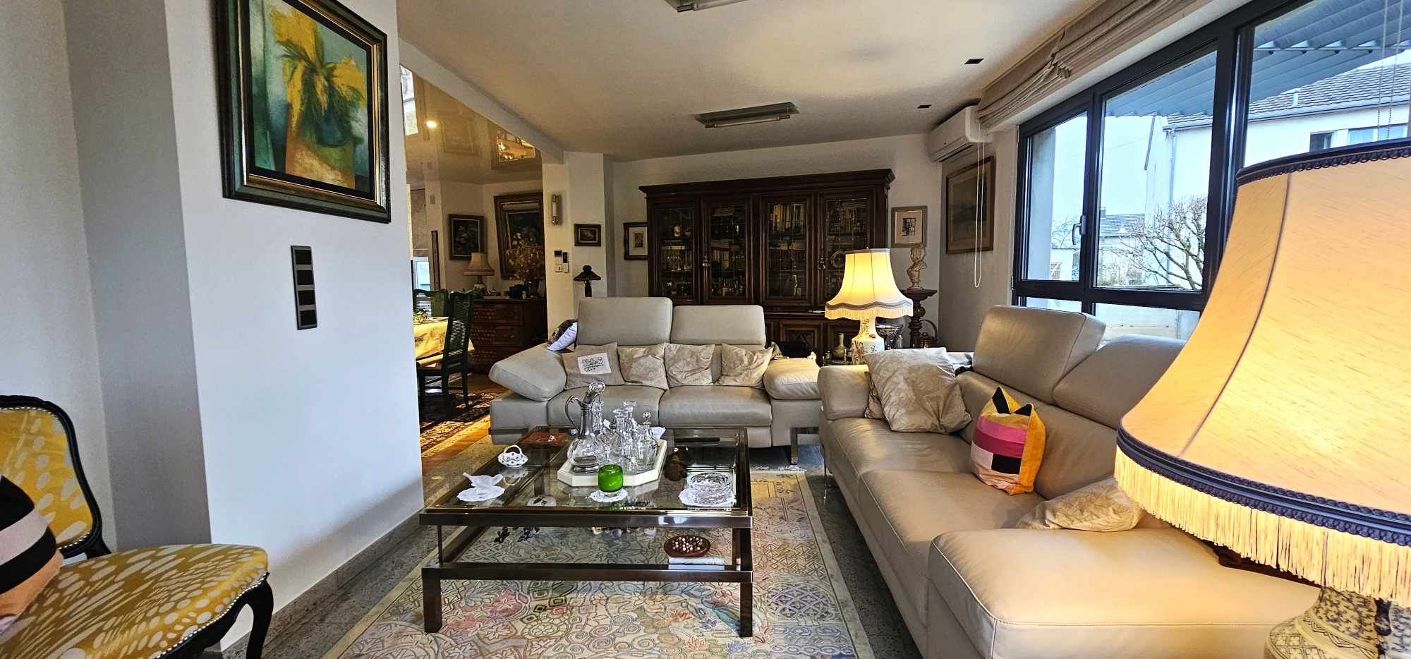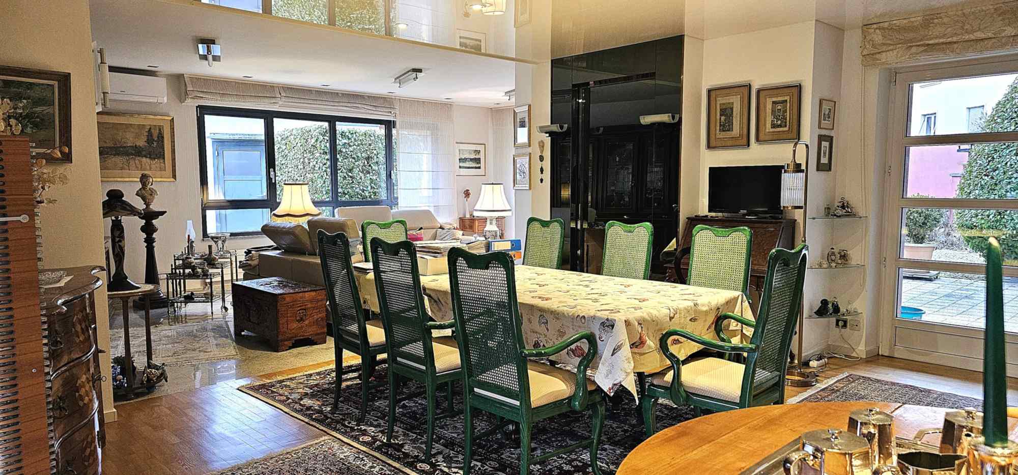 - Vaste salon / salle à manger de 67 m², avec cheminée, baigné de lumière grâce aux larges baies vitrées ouvertes sur le jardin
